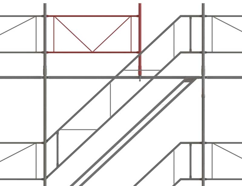 • pour les rétrécissements d'échafaudage sur la longueur et les accès aux escaliers